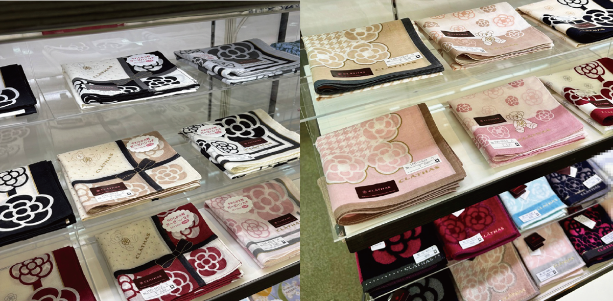 【 2026春夏コレクションのお知らせ 】 春の定番桜モチーフ×CLATHASカメリアのハンカチはやわらかなパステルカラーで! デイリーはもちろんギフトにも最適です。